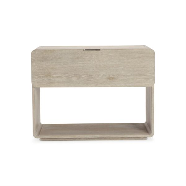 The Andres nightstand has a an open bottom shelf that adds a lightness to its modern organic design. Topped with a single drawer with a shaped front, it is finished in the warm and natural oak.