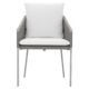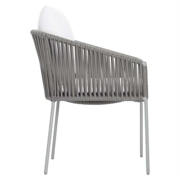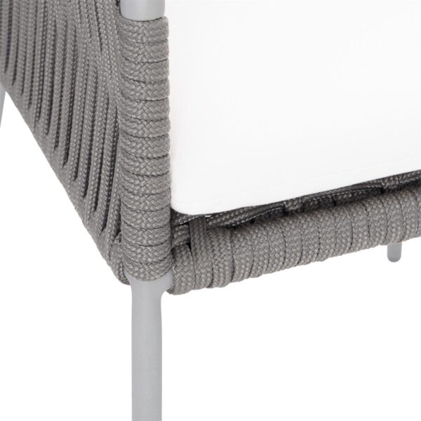 The Armani Outdoor armchair has a light and airy design thanks to a flat braided rope that encircles a powder coated aluminum frame for a design that can be used in outdoor spaces or interior rooms.