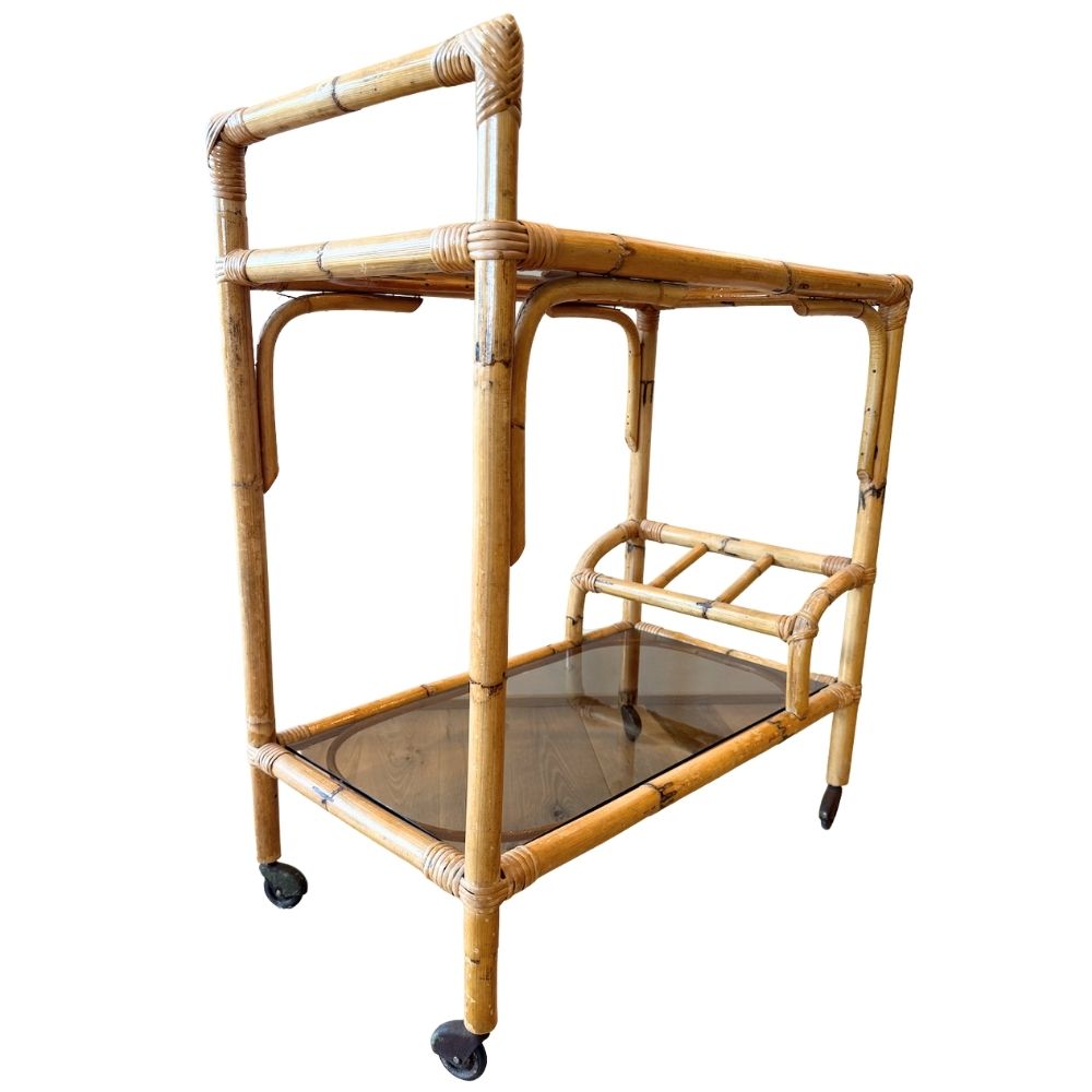Home • Shop • Antiques • Antique Tables • Antique Bar Carts & Chopping Blocks • Bamboo Trolley, France c. 1960
