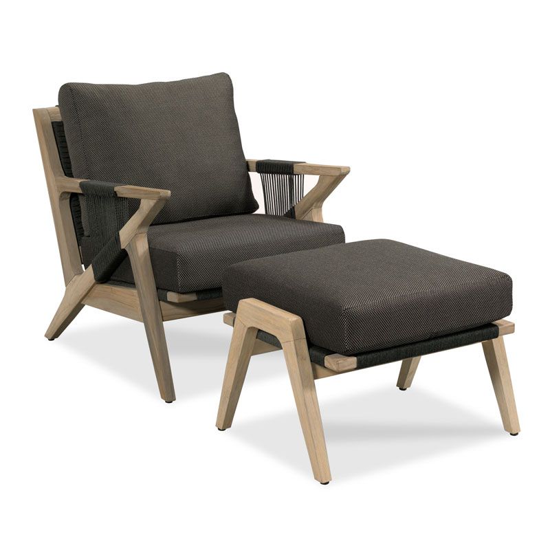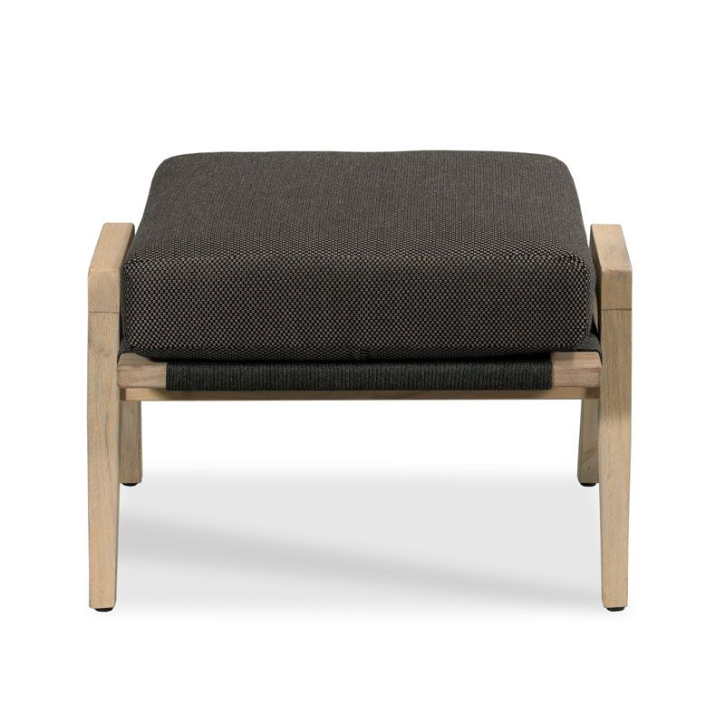 Styled in the spirit of mid 20th century Hans Wegner originals, an upholstered cushion above a rope weave frame elevated on four shaped legs.