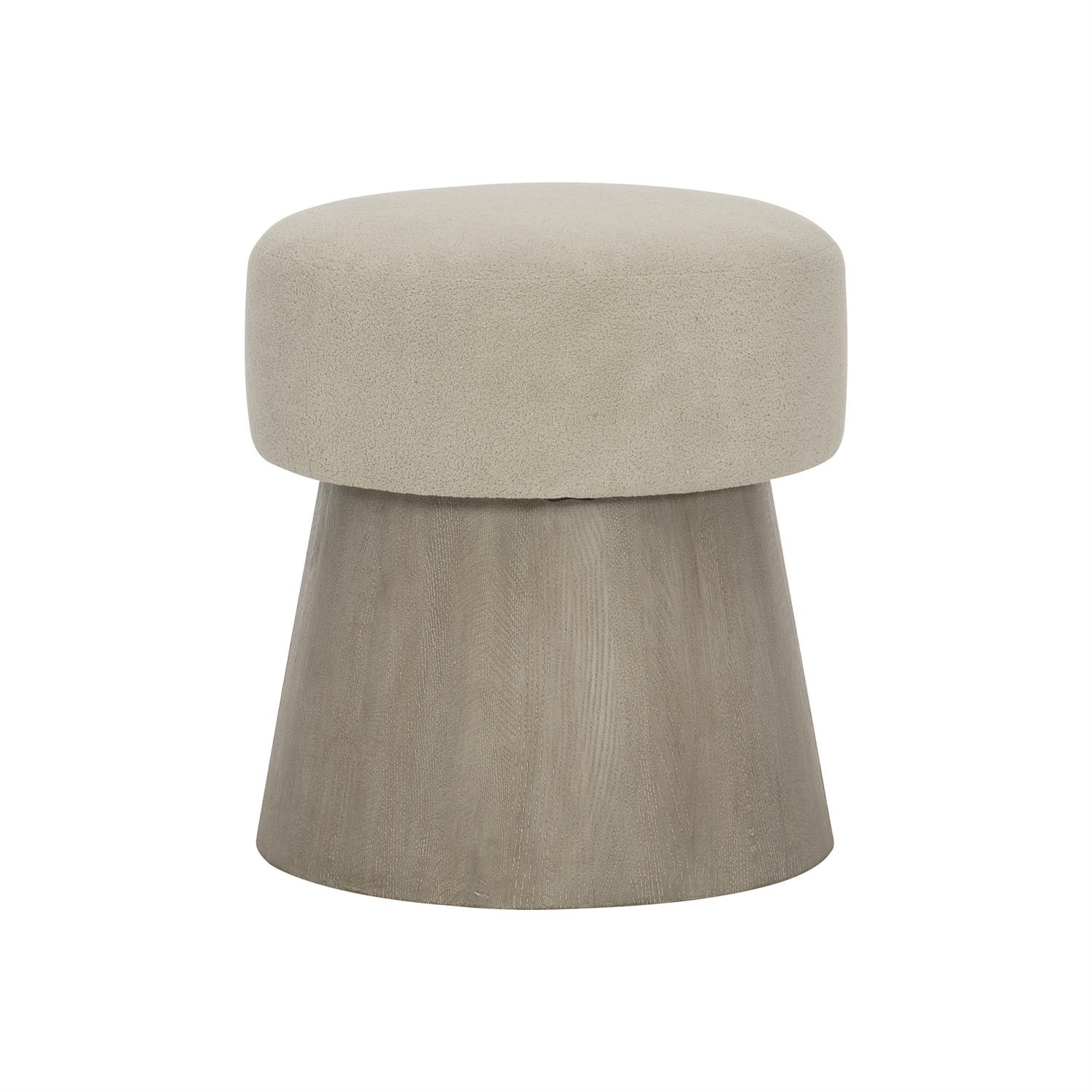 With an artistic, modernist sensibility, the Dallas bench experiments with function and form. In this unique geometric design, a round upholstered seat rests on a conical base featuring wire-brushed oak veneers.