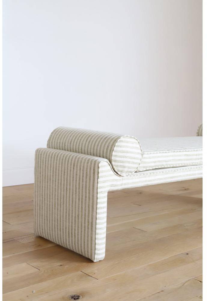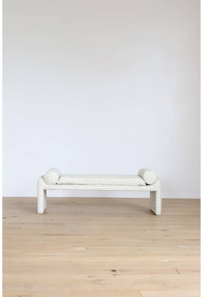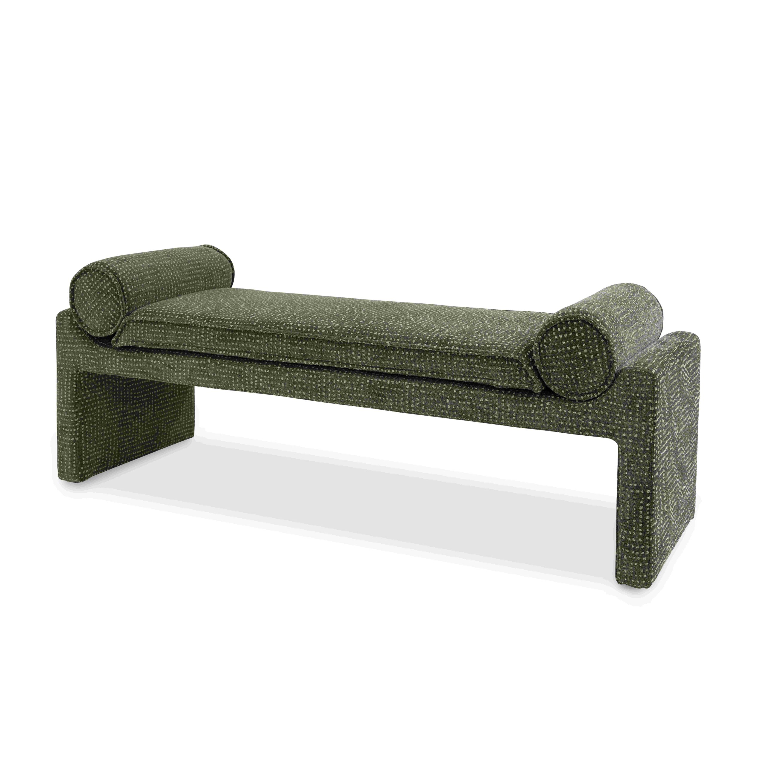 A charming addition to any room that prioritizes both style and comfort, the Georgia Bench is an upholstered occasional bench complete with bolster pillows. The Georgia Bench creates a cozy and inviting space to unwind or converse. Its elegant design and tailored appearance make it a versatile piece that seamlessly blends with various interior styles from contemporary to classic.