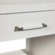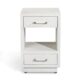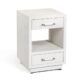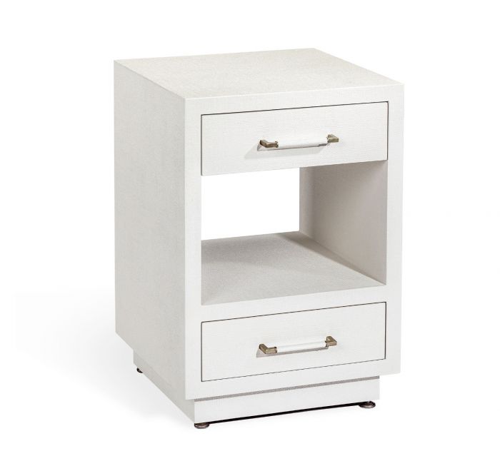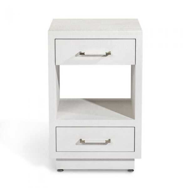 The clean lines of the Grayson Petite Bedside Chest are transformed into a statement piece thanks to a surface of natural white faux linen and metal pulls in champagne silver.