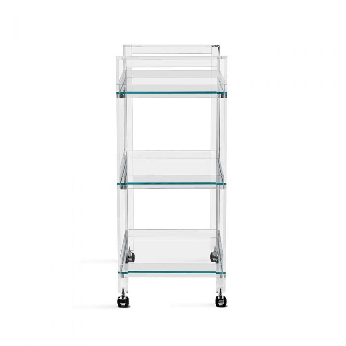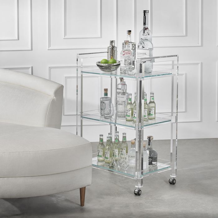 Setting the tone for the party, the acrylic and glass Harper Bar Cart pairs clean, simple lines with a fresh, mod vibe