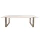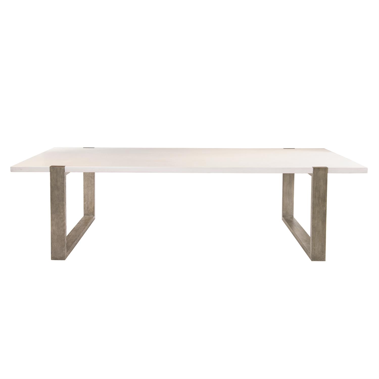 Crafted from oak solids and maple veneers, the Hattie dining table pairs contrasting finishes in a harmonious design. The rectangular top is finished in a smooth cloud plaster, while the open base is presented in hazel white oak. Beautiful in its simplicity, this two-tone table offers a clean, bright look with a warm and welcoming feel.