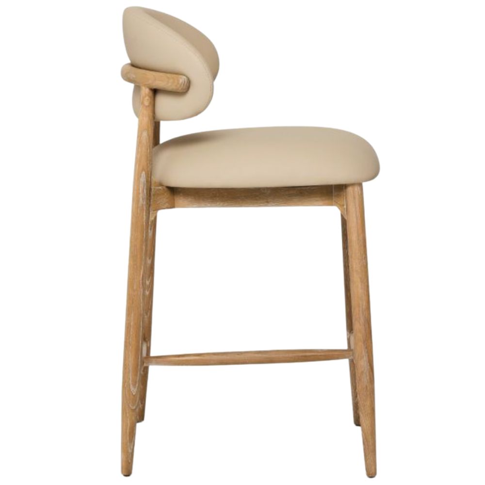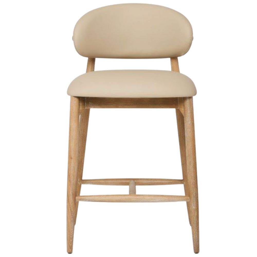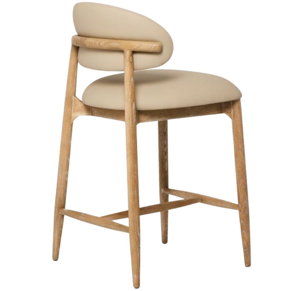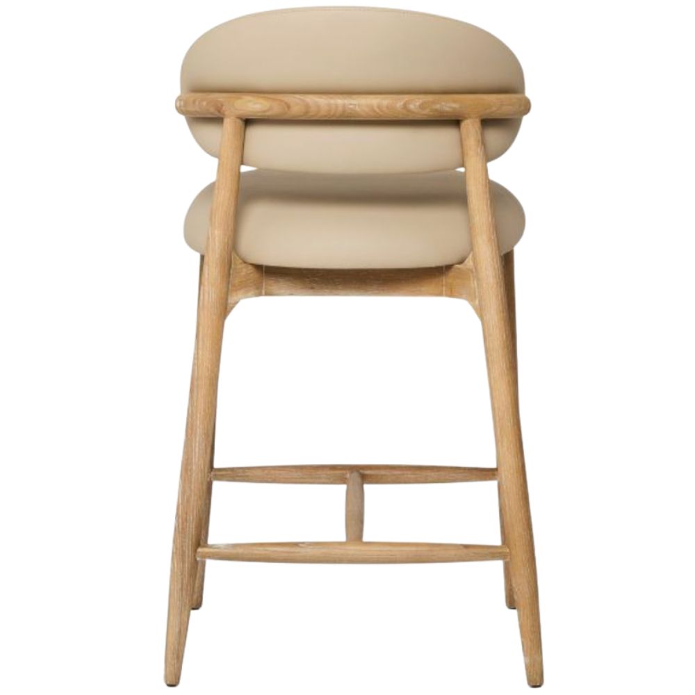 Giving Danish modern vibes, the ash Hector Counter Stool boasts the fresh pairing of a whitewash finish and vegan leather upholstery in cream latte.
