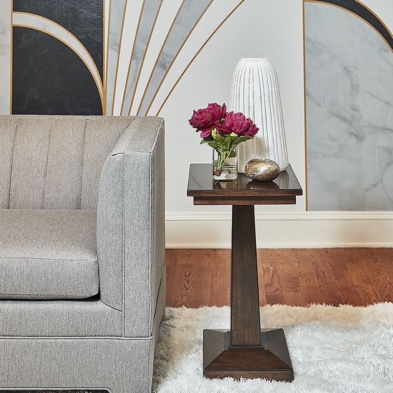 A rectangular chairside table with a tapering square column above a rectangular base.