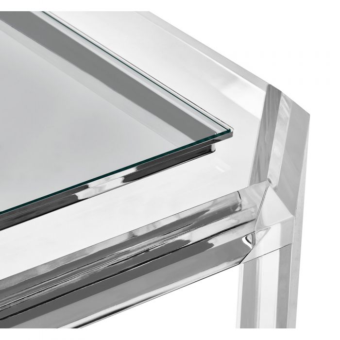An architectural silhouette transforms the acrylic and glass Nadia Game Table into a fabulous statement-making accent. Endlessly versatile as a small dining table, game table or accent table to activate any space.