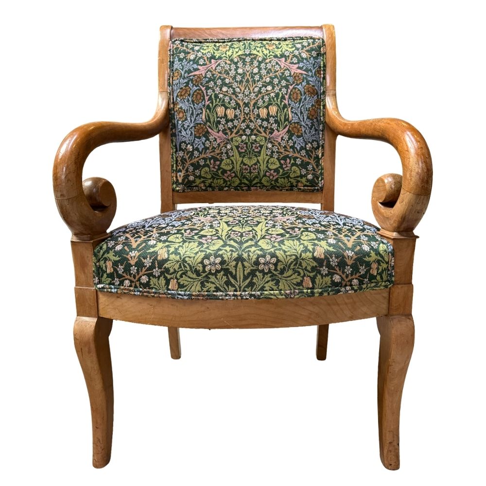 Pair of Napolean III Armchairs w/ Crosier Armrests – France circa 1850