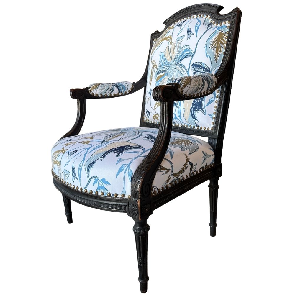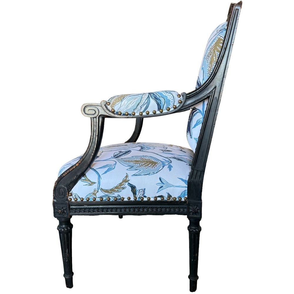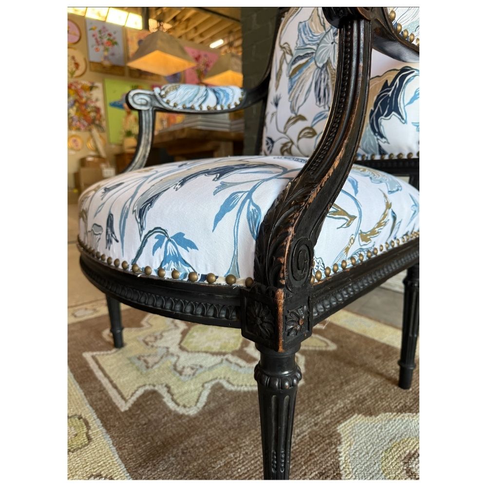 Pair of Napoleon III Black Painted Armchairs, France c. 1880