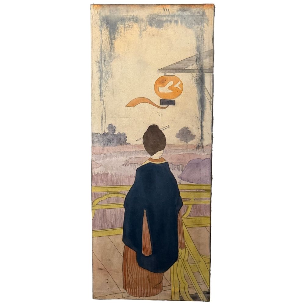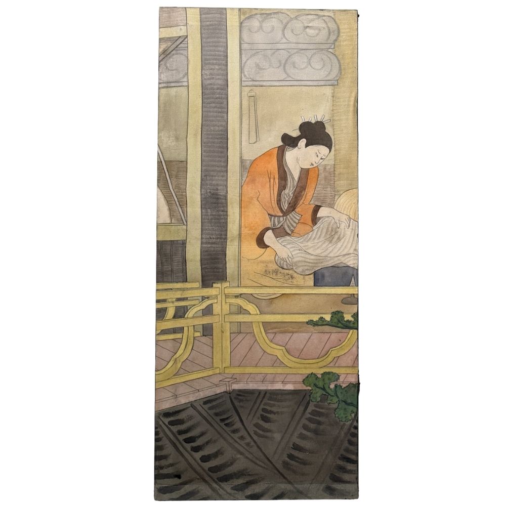 Home • Shop • Antiques • Vintage & Antique Art • “Sunset Textile Merchant” Set of 4 Panels c. 1900
