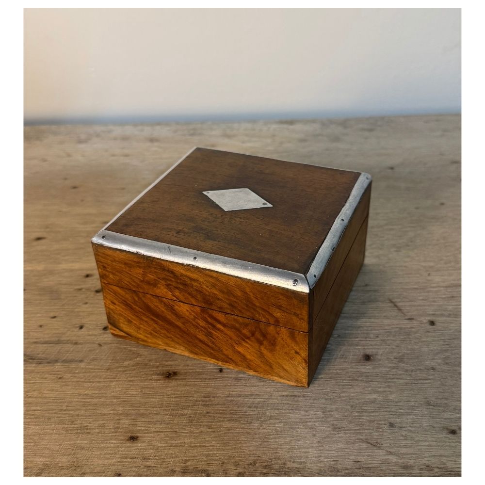 Home • Shop • Antiques • Antique Accessories • Antique Decorative and Miscellaneous Objects • Wooden Box with Metal Trim, France c. 1920